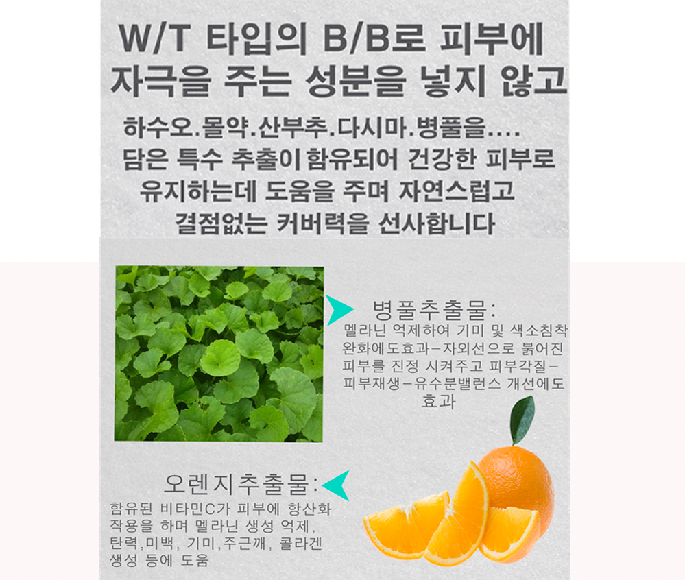 Kem nền B.B chống nắng thay thế kem lót, kem che khuyết điểm giúp việc trang điểm hàng ngày trở nên đơn giản hơn, thẩm thấu nhanh giúp da khô thoáng không gây bết dính. Kem có tác dụng dưỡng trắng da, cân bằng độ ẩm cho da, chống thấm nước, ngăn chặn tia tử ngoại tránh gây sạm da, không gây kích ứng da, được chiết xuất từ các thành phần tự nhiên như tinh chất hà thủ ô, nhựa cây mộc dược, tảo biển..., giúp làm chậm quá trình lão hóa, giúp trẻ hóa da, làm giảm