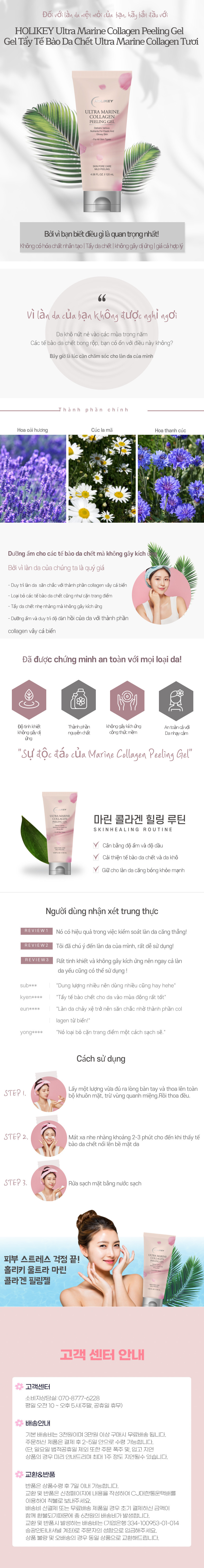 Tẩy tế bào da chết dạng gel có chứa collagen vây cá biển, hoa oải hương, cúc la mã, hoa thanh cúc và tinh dầu cây xô thơm. Giúp loại bỏ các tế bào da chết già cỗi cũng như cặn trang điểm giúp da thông thoáng, thành phần collagen vây cá biển giúp duy trì độ đàn hồi cho da, chống lão hóa da