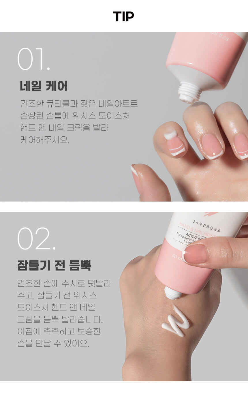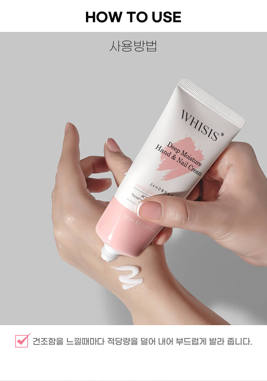 Cách dùng: Lấy một lượng vừa đủ thoa đều lên da tay và vùng da quanh móng. Massage nhẹ nhàng cho đến khi sản phẩm thẩm thấu hoàn toàn. Sử dụng nhiều lần trong ngày, đặc biệt sau khi rửa tay hoặc khi da khô ráp.