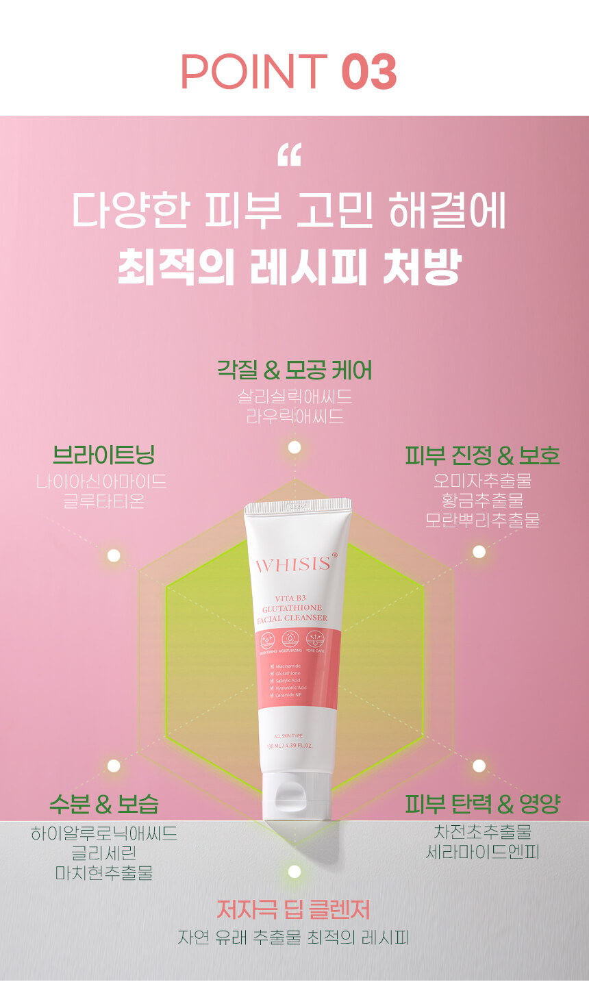 Sữa rửa mặt giúp làm sạch da, loại bỏ bã nhờn và tạp chất, hỗ trợ duy trì độ ẩm và giúp làm mềm da. Với sự kết hợp của các thành phần như Niacinamide, Salicylic Acid, Glutathione, Hyaluronic Acid và Ceramide NP, sản phẩm giúp chăm sóc làn da sáng khỏe, mịn màng và thoáng sạch mỗi ngày.
