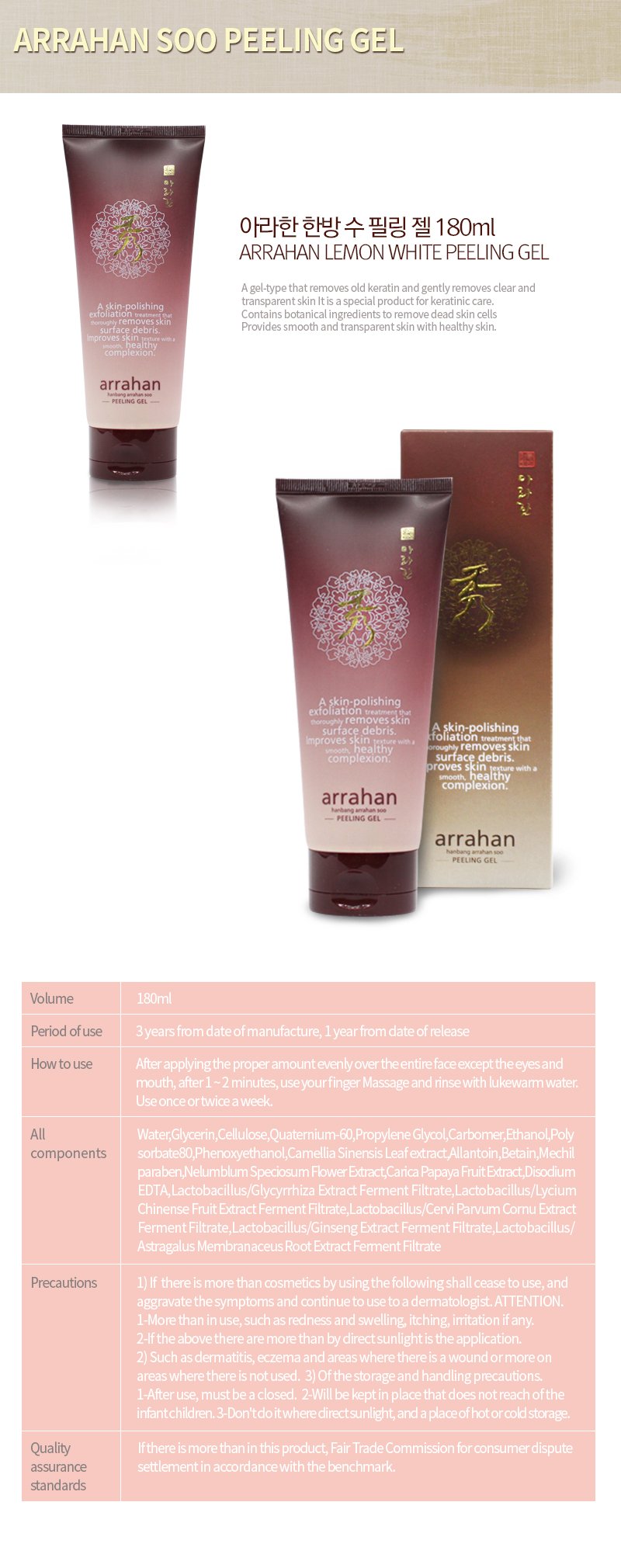 - Gel Tẩy Tế Bào Da Chết Arrahan pelling gel chứa thuốc đông y, thành phần collagen và chiết xuất từ quả la hán.