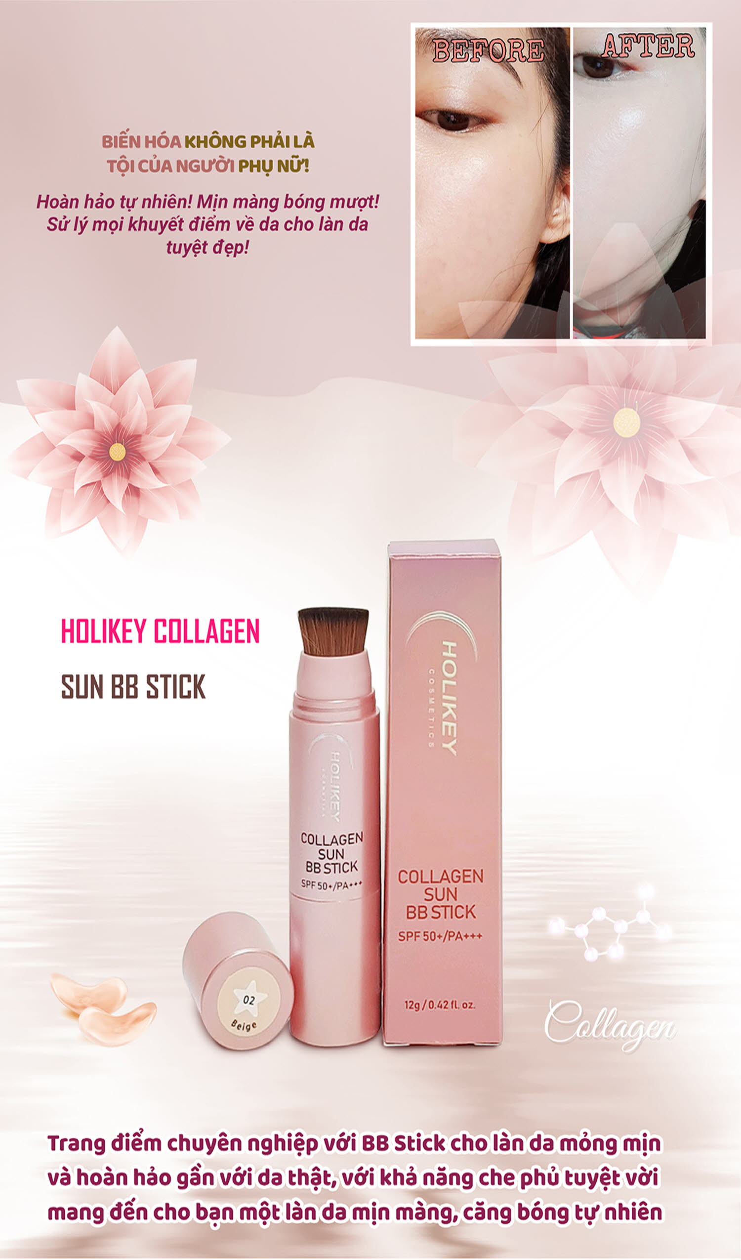 HOLIKEY COLLAGEN SUN BB STICK PHẤN TRANG ĐIỂM CHỐNG NẮNG COLLAGEN TƯƠI