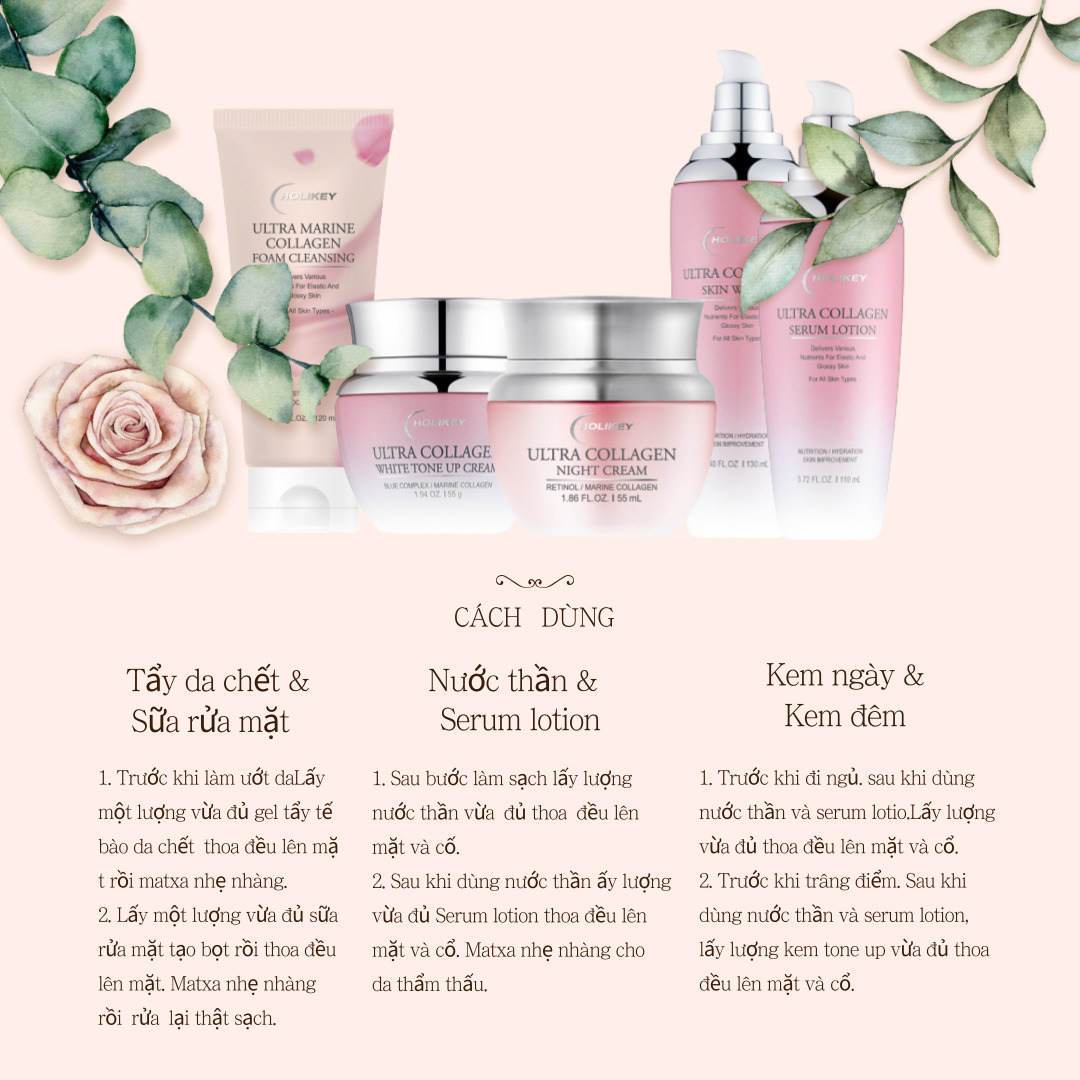 HOLIKEY ULTRA COLLAGEN SKIN CARE BỘ DƯỠNG DA CHUYÊN SÂU TINH CHẤT COLLAGEN TƯƠI SÉT 5 CAO CẤP