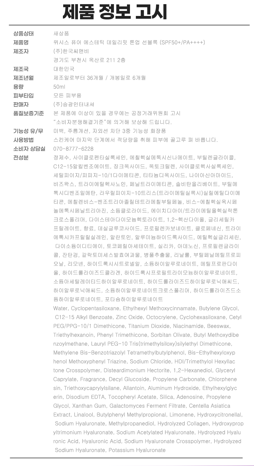 WHISIS Pure Esthetic Daily Fit Tone Up Sun Block (SPF50+/PA++++)