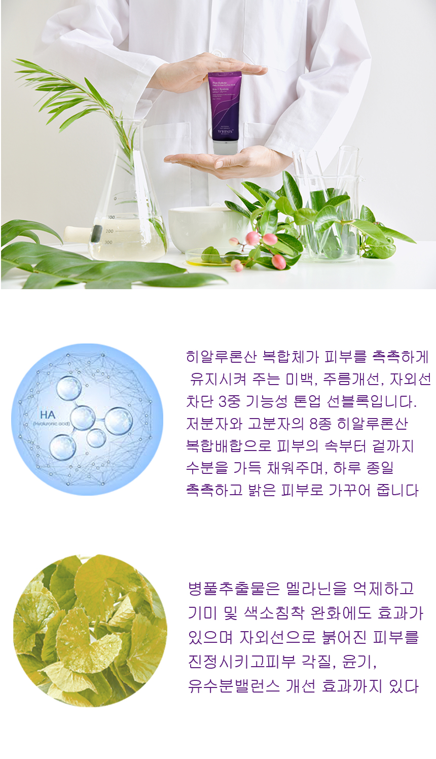 Là một loại kem chống nắng nâng tông da với ba chức năng chống tia cực tím, làm trắng, cải thiện nếp nhăn, cung cấp hiệu ứng nâng tông và bảo vệ da khỏi tia UVA và UVB mạnh mẽ, trong khi phức hợp axit hyaluronic giữ ẩm cho da. Một sự pha trộn phức hợp của 8 loại axit hyaluronic có trọng lượng phân tử thấp và trọng lượng phân tử cao giúp cung cấp độ ẩm cho da từ trong ra ngoài, giúp da ẩm mượt và tươi sáng suốt cả ngày dài.