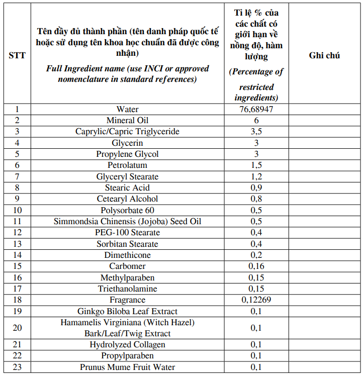 - Được chiết xuất từ collagen và các thành phần thảo mộc nguồn gốc từ thiên nhiên có tác dụng giữ ẩm và cân bằng lượng nước và lượng dầu của da.