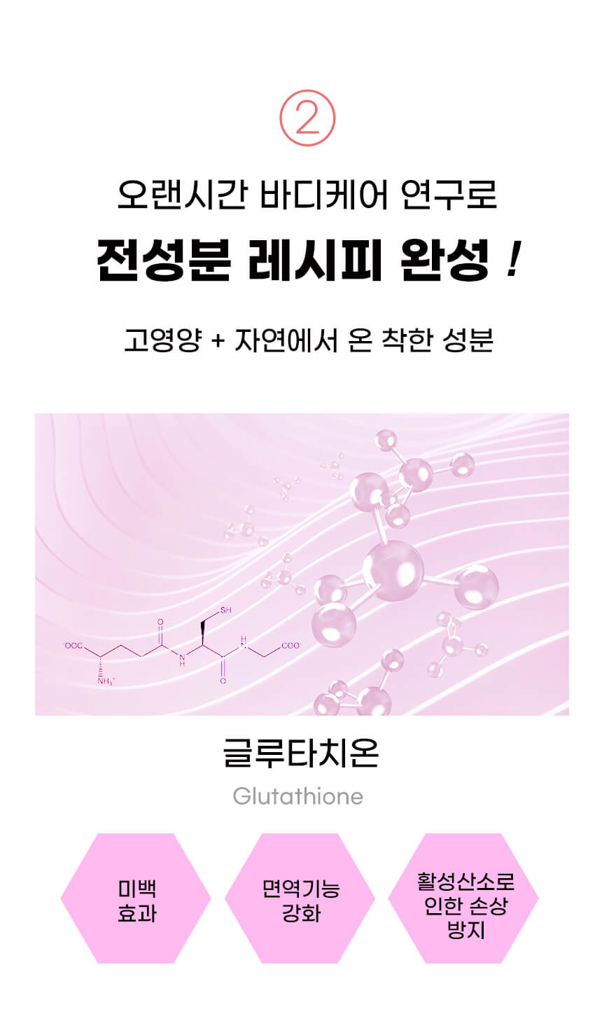 Sữa dưỡng thể giúp cấp ẩm và làm mềm da. Với thành phần Glutathione, sản phẩm hỗ trợ cải thiện sắc tố da, mang lại cảm giác tươi tắn, đều màu và rạng rỡ sau khi sử dụng.