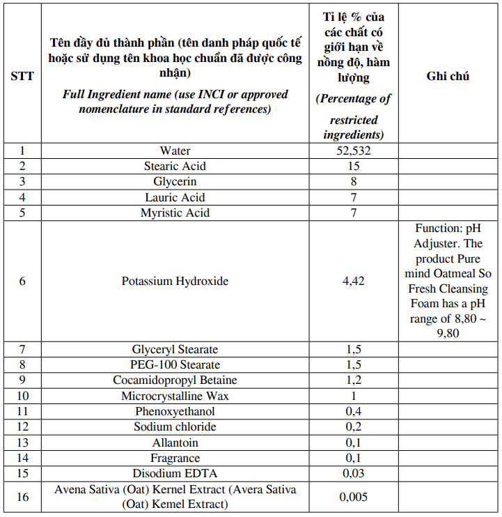 Sữa rửa mặt chiết xuất từ lúa mạch PURE MIND OATMEAL SO FRESH CLEANSING FOAM