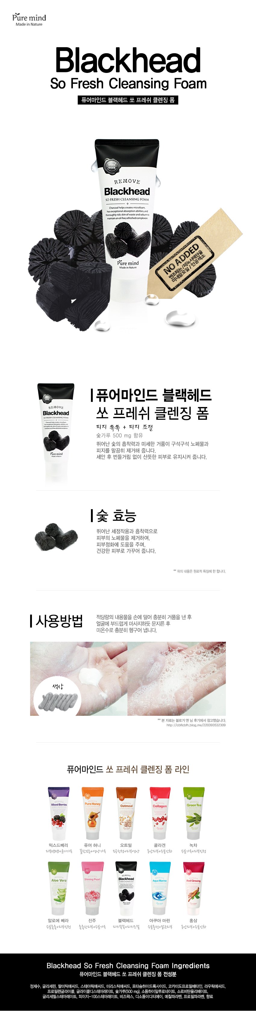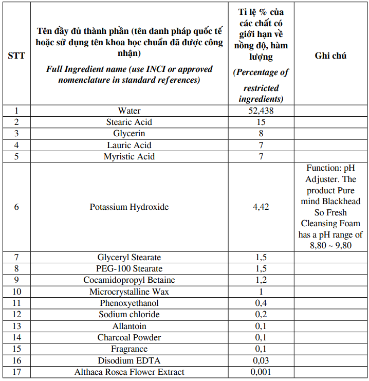 Sữa rửa mặt chiết xuất từ than hoạt tính PURE MIND BLACKHEAD SO FRESH CLEANSING FOAM
