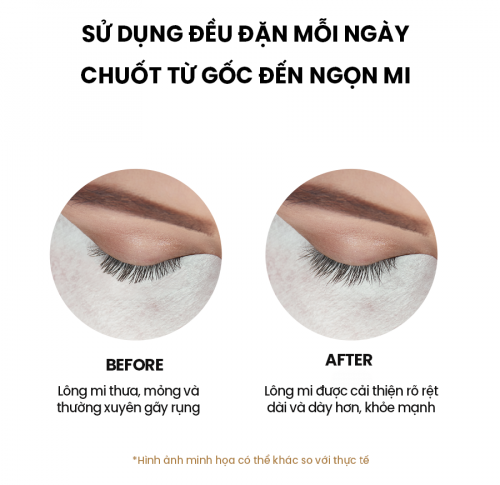 – Lấy một lượng thích hợp với cọ tích hợp và thoa lên lông mi và lông mày của bạn. Có thể thoa lên chân tóc mai để kích thích mọc tóc.