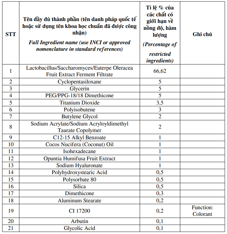 - Thành phần chính: Retinol, Arbutin, Niacinamide, Chiết xuất thảo dược tự nhiên