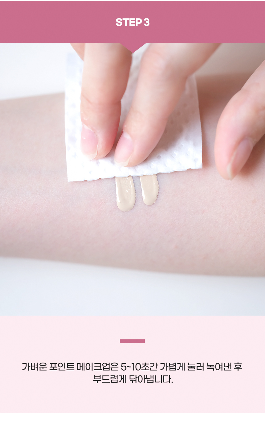 Bước 2. Đối với lớp trang điểm dày, ấn nhẹ từ 5 đến 10 giây để lớp trang điểmdễ tan, sau đó nhẹ nhàng lau sạch.