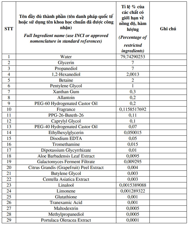 Thành phần sản phẩm: