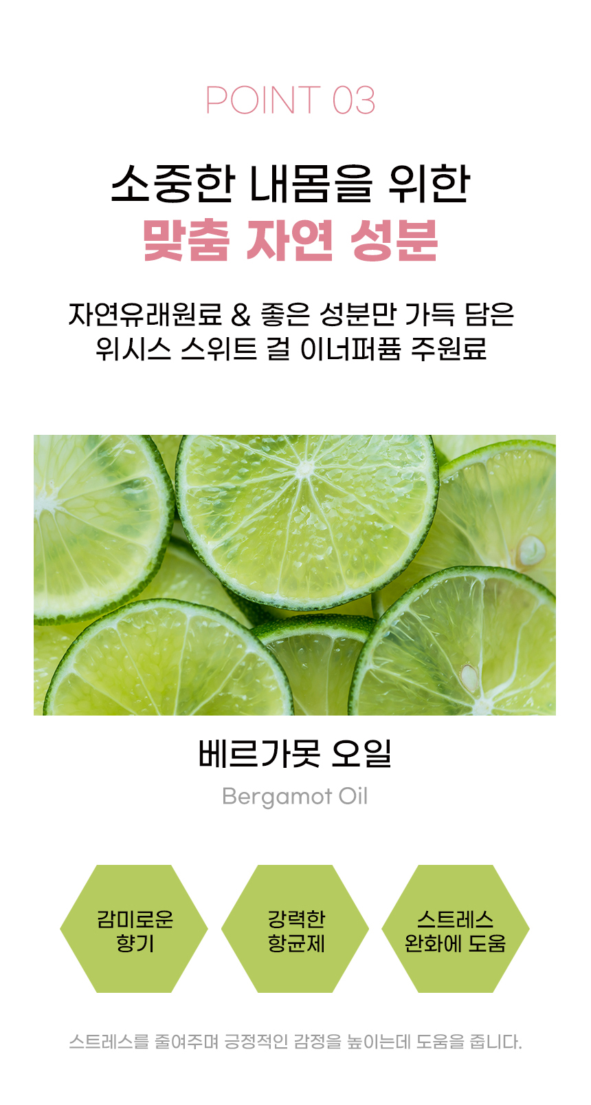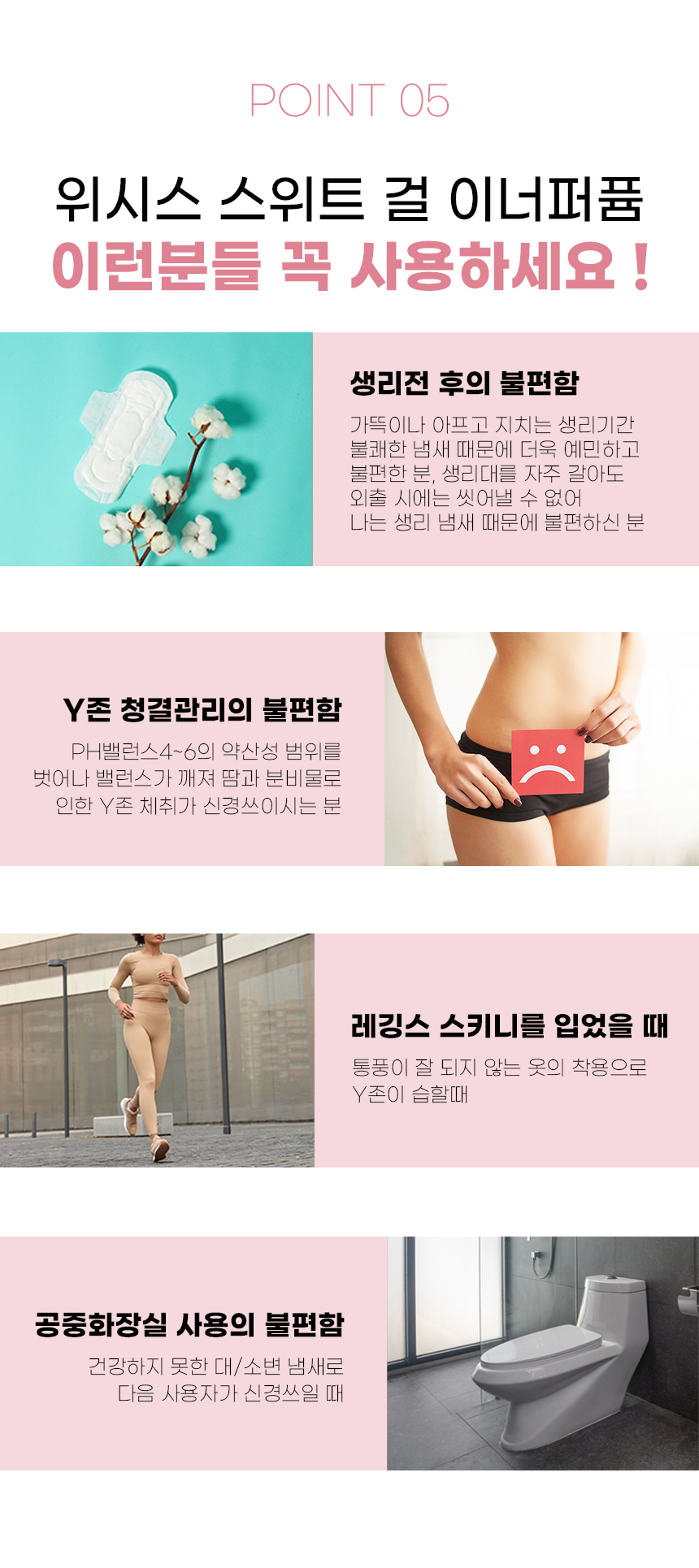 Công dụng: Cân bằng độ pH cho "cô bé" luôn sạch sẽ, thơm tho cả ngày. Phòng ngừa viêm nhiễm và các bệnh phụ khoa. Loại bỏ mùi hôi vùng kín. Lãng mạn hơn trong chuyện ''yêu''